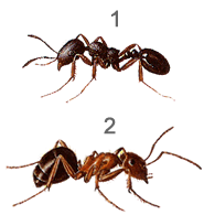 Auftreten: An allen möglichen Nahrungsmittel, insbesondere in Süß und Fleischwaren; in Wohnungen, Lagerhäusern, Lebensmittelgeschäften usw. Erkennung: “Ameisenstraße“ entlang der Sesselleisten, unter den Fensterbrettern; Nester in Holz und Mauerwerk. Bedeutung: Ameisen werden in Häusern durch Verunreinigung der Nahrungsmittel und ihr sehr hartnäckiges Auftreten außerordentlich lästig. Ameisen sind Staatenbildende Insekten und leben in volkreichen Nestern. Die vermehrungsfähigen Weibchen (Königinnen), Männchen und die Brut bleiben im Nest, während die normalerweise fortpflanzungsfähigen „Arbeiterinnen“ auf Nahrungssuche gehen und die Nestinsassen versorgen.