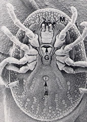 Erkennung: Die Milben überziehen das Nährmedium, so dass diese wie mit einer beweglichen Staubschicht überzogen aussieht.